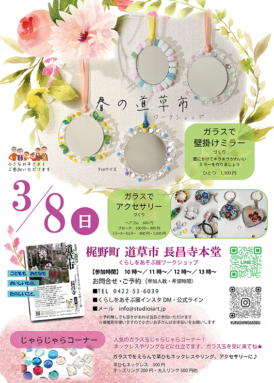 ※道草市は雨天中止ですが、ガラスワークショップのみ場所を変えて開催します。